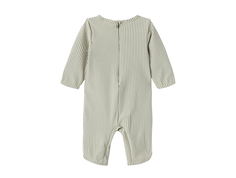 Stribet badedragt med lange ben og ærmer i farven dried sage fra Lil' Atelier.