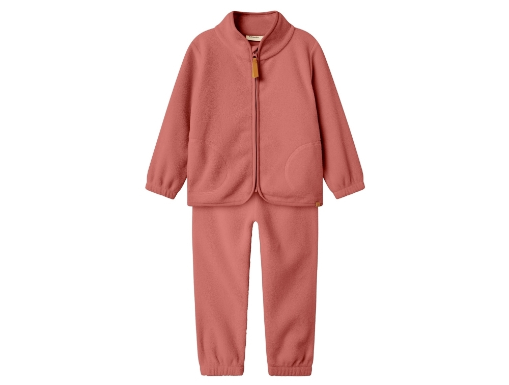 Fleece sæt i pink nuance (withered rose) fra Lil' Atelier med jakke og bukser i blød kvalitet.