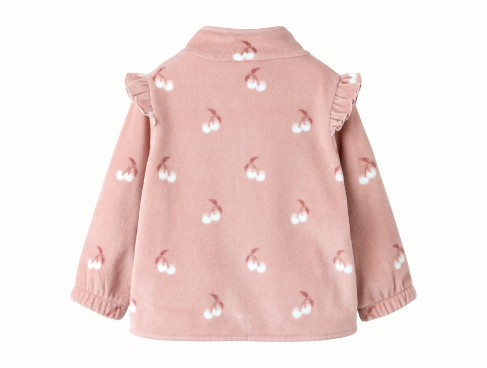 Lil' Atelier fleecejakke misty rose med flæser og kirsebærprint