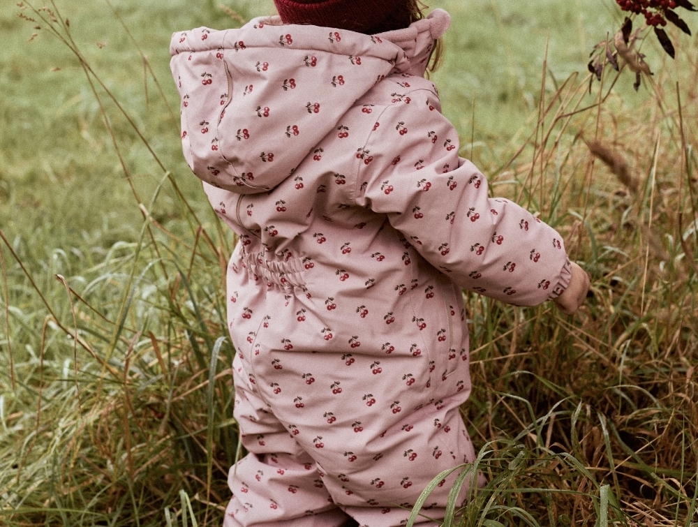 Lil' Atelier flyverdragt misty rose med kirsebærprint og fleecefor