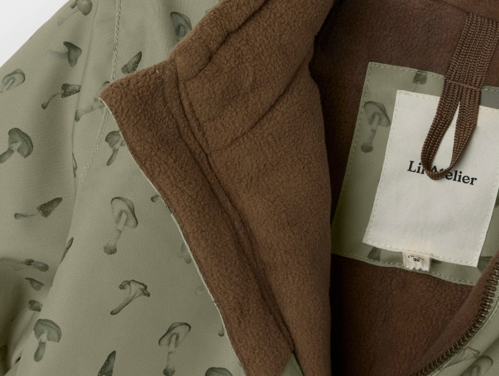 Lil' Atelier flyverdragt med svampeprint, fleecefor og refleksdetaljer