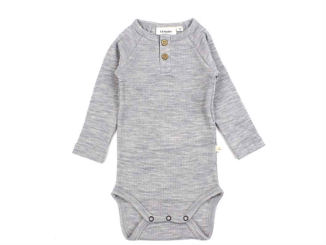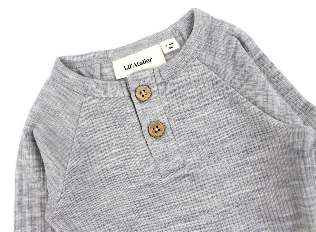 Body i farven grey melange i lækker blød merinould fra Lil' Atelier.