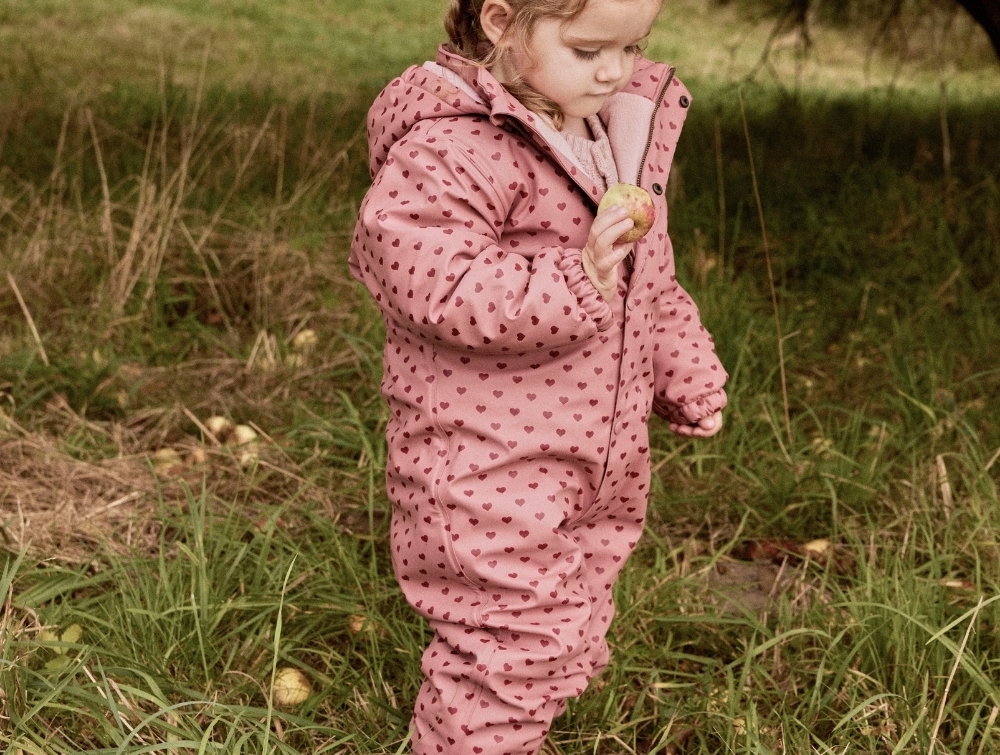 Lil' Atelier gummiflyverdragt withered rose med hjerteprint og fleecefor