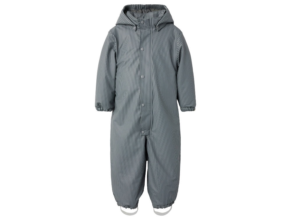Lil' Atelier gummiflyverdragt i grå med striber og aftagelig hætte
