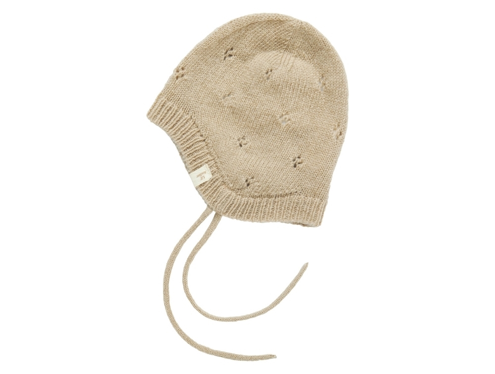 Strikket hjelm i beige nuance (safari) fra Lil' Atelier.
