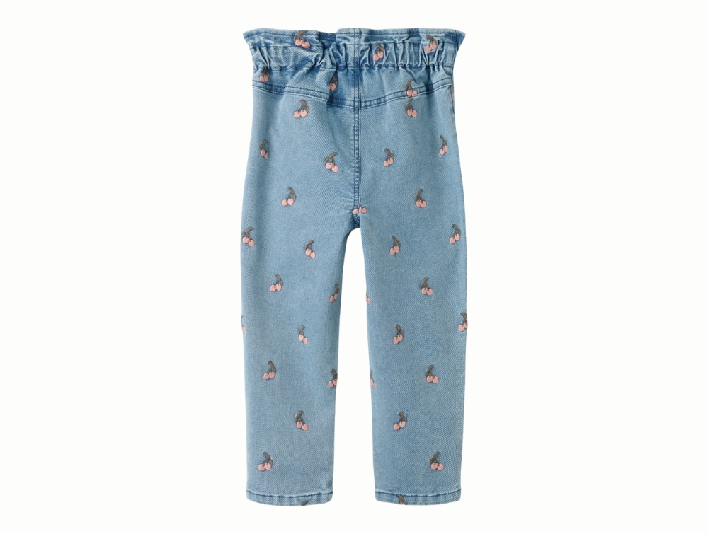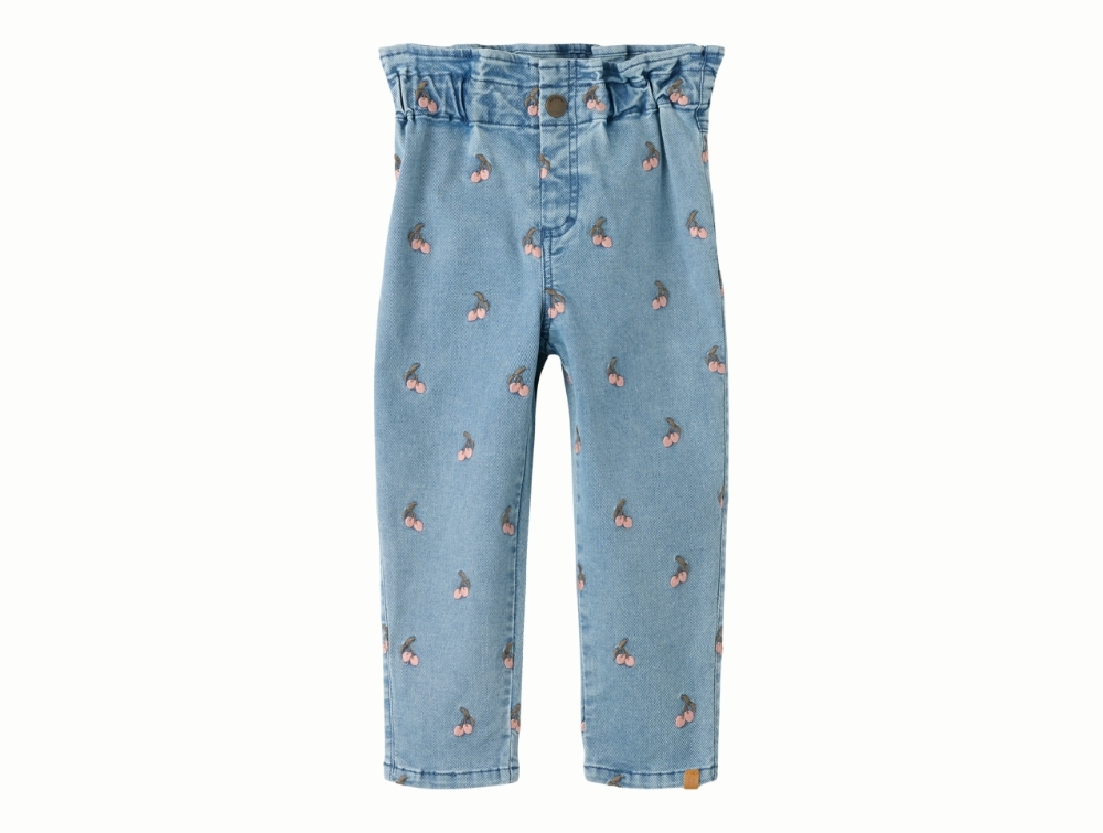 Jeans i blå nuance fra Lil' Atelier med små broderede kirsebær.
