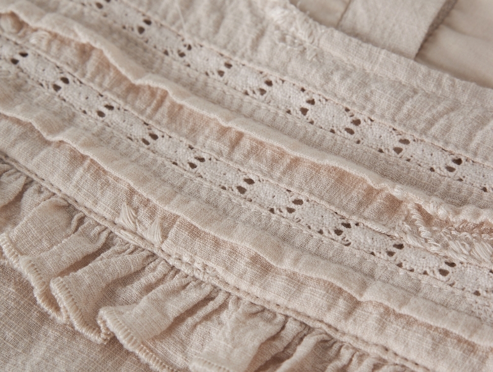 Lil' Atelier kjole i beige nuance med broderi og flæser