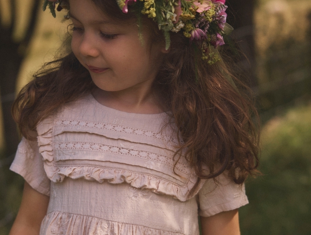 Lil' Atelier kjole pumice stone med broderi og flæser