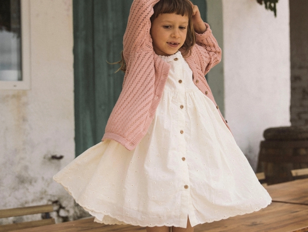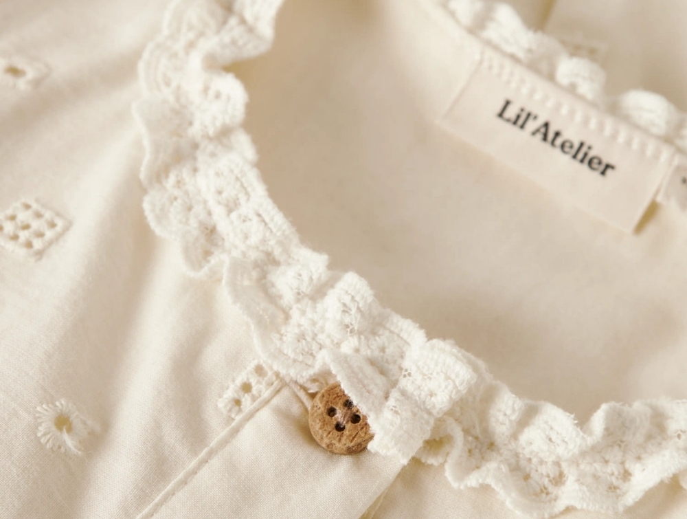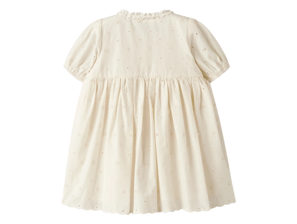 Lil' Atelier kjole coconut milk med broderi og knaplukning
