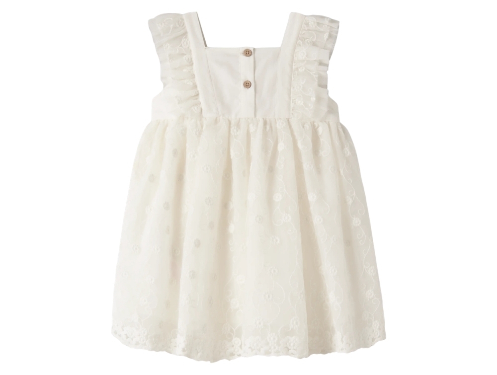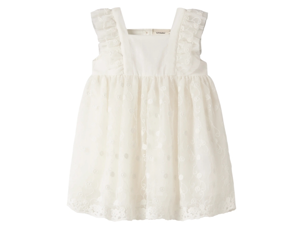 Lil' Atelier kjole i råhvid nuance med tylbroderi