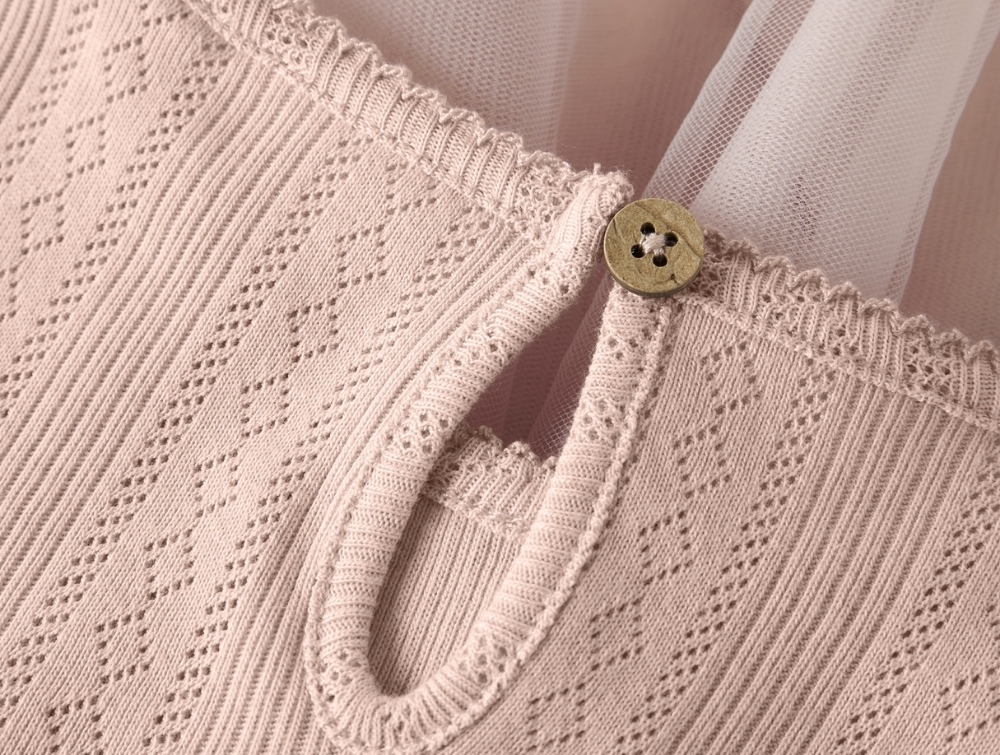 Kjole i lyserød nuance (peach whip) fra Lil' Atelier med hulmønster i overdel og let tylskørt.