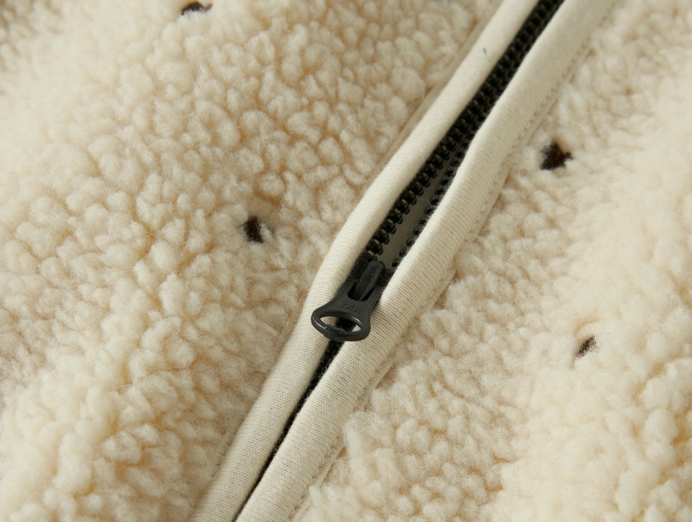 Dragten har lynlåslukning med hagebeskytter, lange ærmer og hætte for ekstra varme. Foldbare manchetter og benkanter gør det nemt at pakke barnet godt ind, mens den bløde fleece giver en dejlig omsluttende følelse. Et ideelt valg til barnevognsture og rolige stunder i vinterhalvåret.