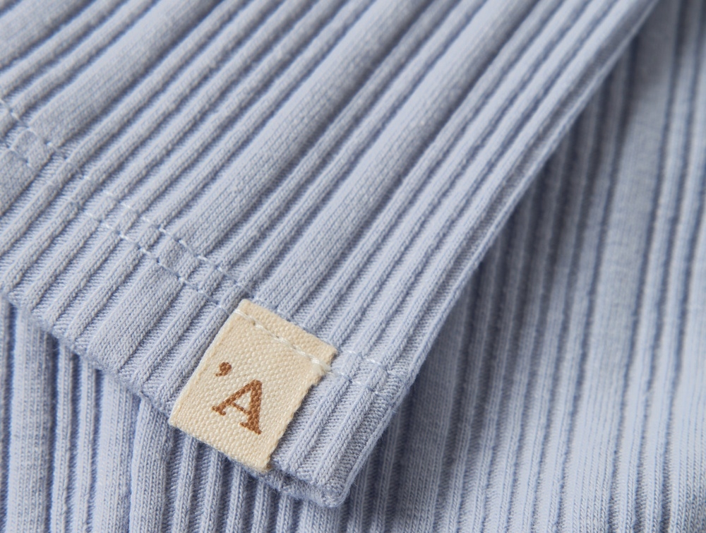 Materialet består af bomuld (økologisk), modal TENCEL™, polyester (genanvendt) og elastan, som giver en blød og fleksibel kvalitet med god stræk. Den ribbede struktur føles behagelig mod huden og følger kroppens bevægelser.