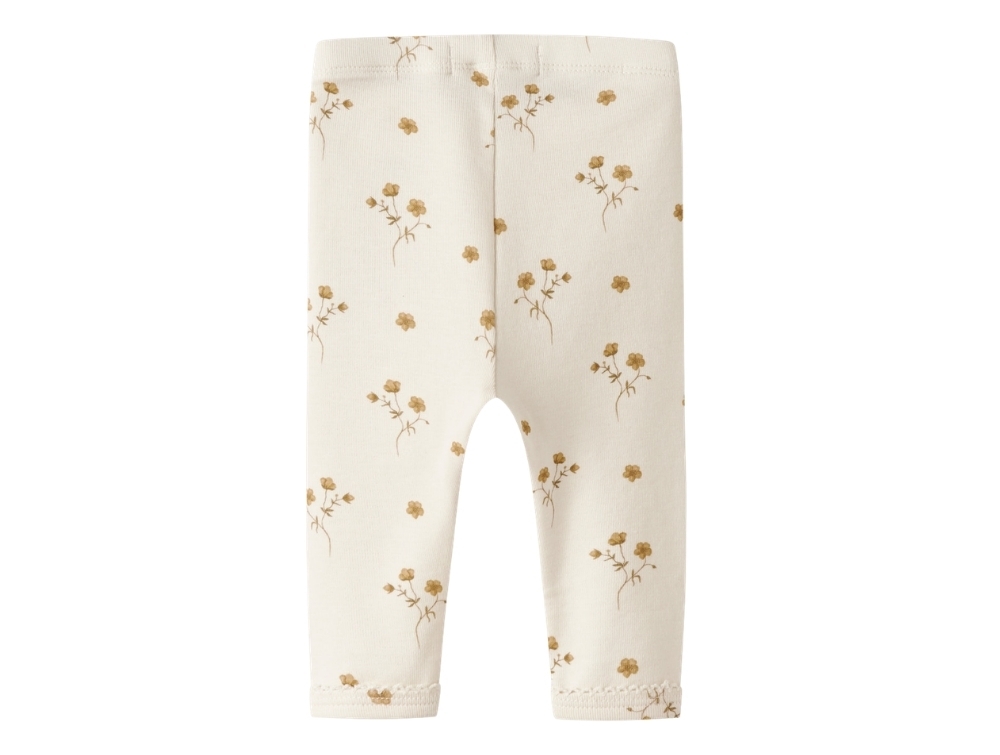 Leggings i råhvid nuance (coconut milk) fra Lil' Atelier med små blomsterprint i varme gyldne toner.