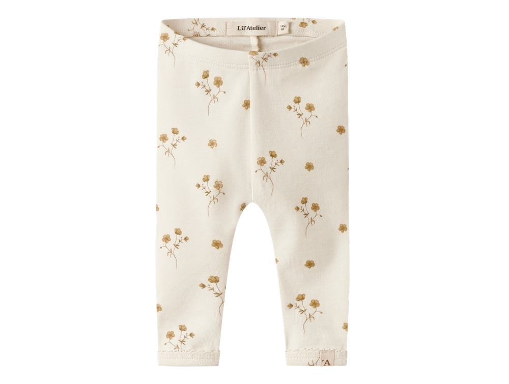 Mere information om Lil' Atelier leggings coconut milk med gyldent blomsterprint