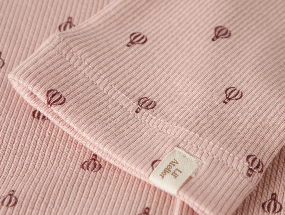 Leggings i rosa nuance (cameo rose) fra Lil' Atelier med sødt luftballonprint. De er fremstillet i blød ribjersey med god stræk, der sikrer en behagelig pasform til hverdagsbrug.