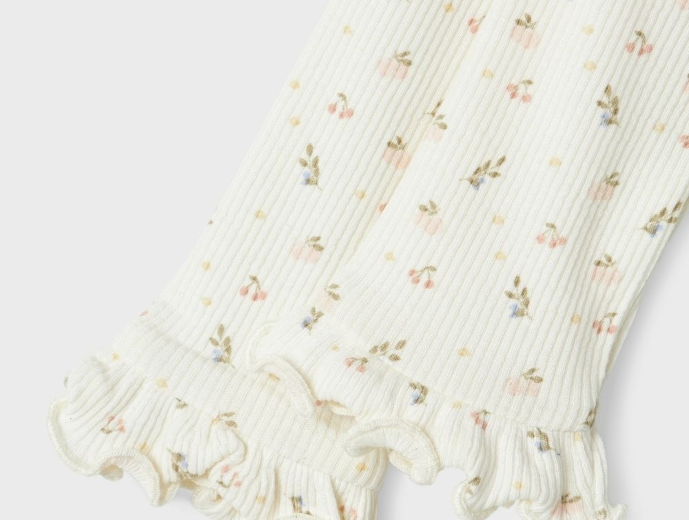 Ribleggings med kirsebærprint i råhvid nuance fra Lil' Atelier.