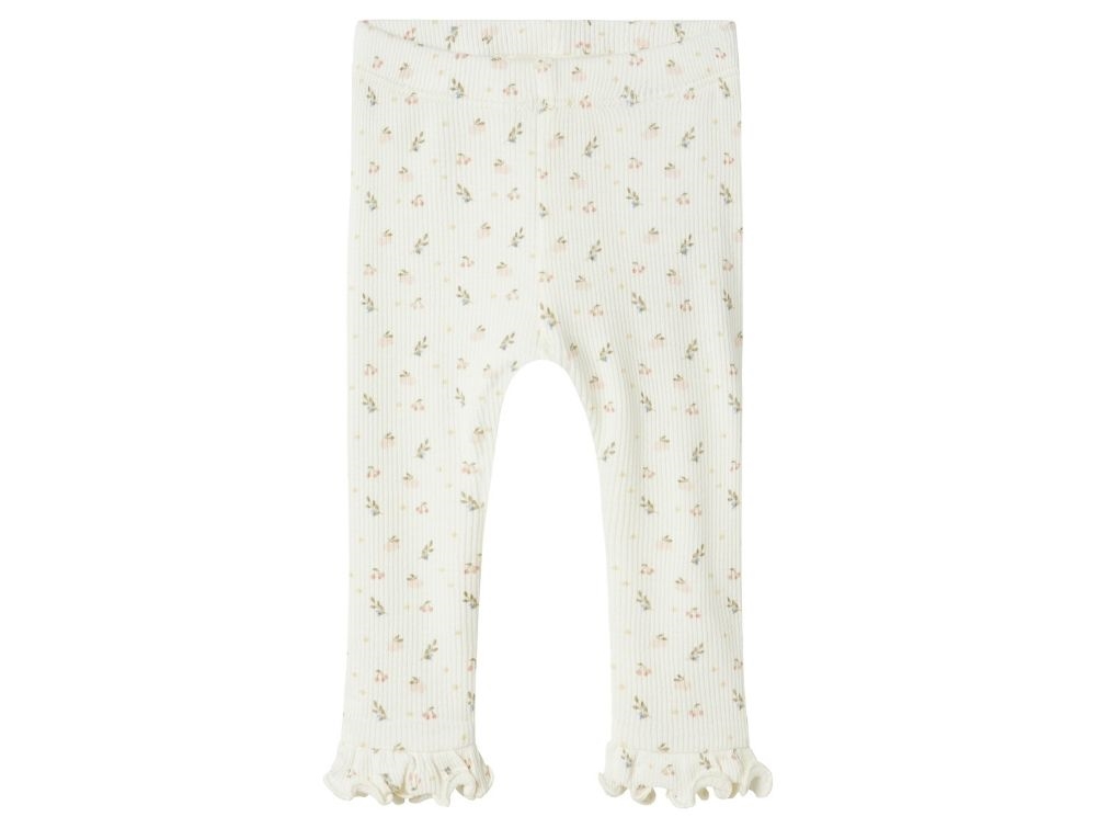 Lil' Atelier leggings coconut milk med kirsebærprint og flæsekant