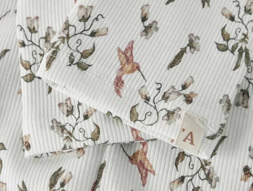 Lil' Atelier leggings i råhvid med kolibriprint og elastik i taljen