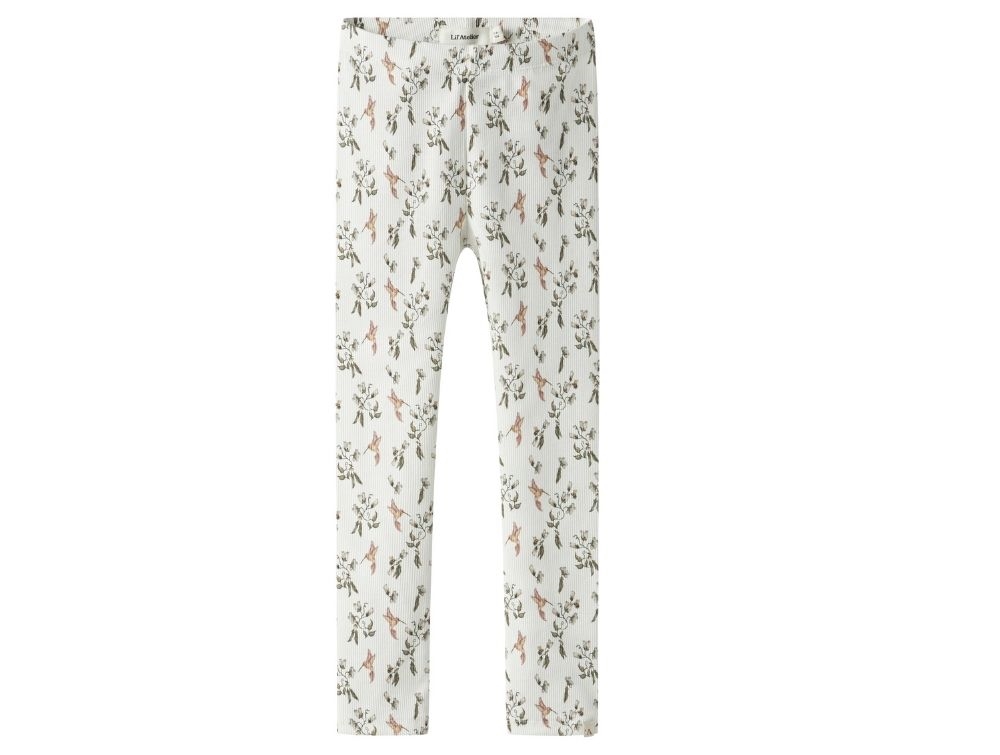 Lil' Atelier leggings coconut milk med kolibriprint og elastik i taljen