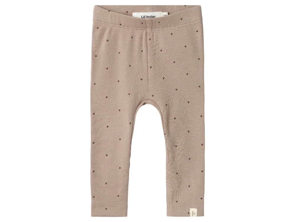 Leggings i støvet rosa nuance fra Lil' Atelier med brune prikker og lille logomærke.
