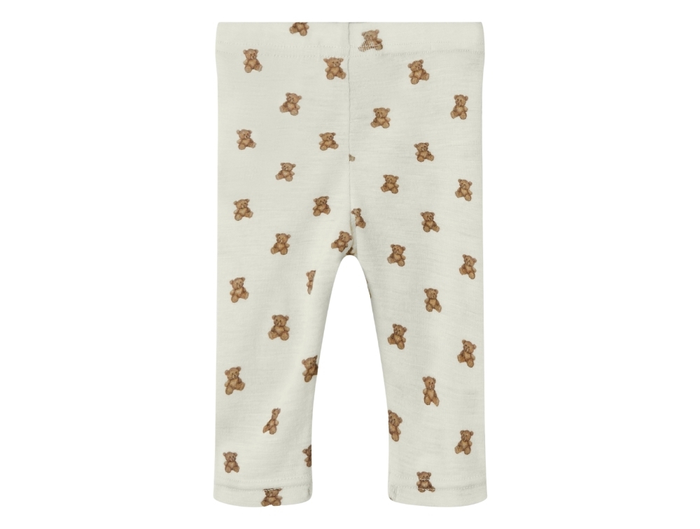 Leggings i råhvid nuance (turtledove melange) med bamseprint fra Lil' Atelier.