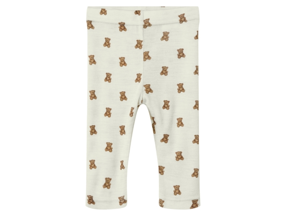 Lil' Atelier leggings turtledove melange i uld/modal med bamseprint