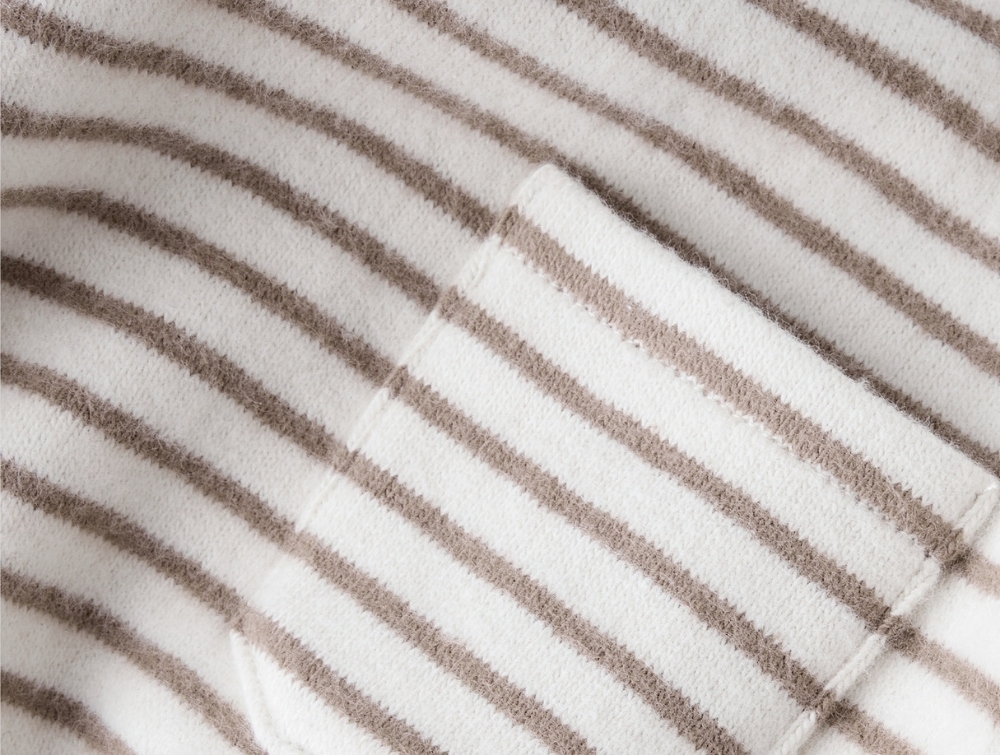 Top i råhvid nuance med brune striber fra Lil' Atelier. Toppen har rund hals, lange ærmer og en lille brystlomme. Den bløde jerseykvalitet med stræk sikrer en behagelig og tætsiddende pasform.