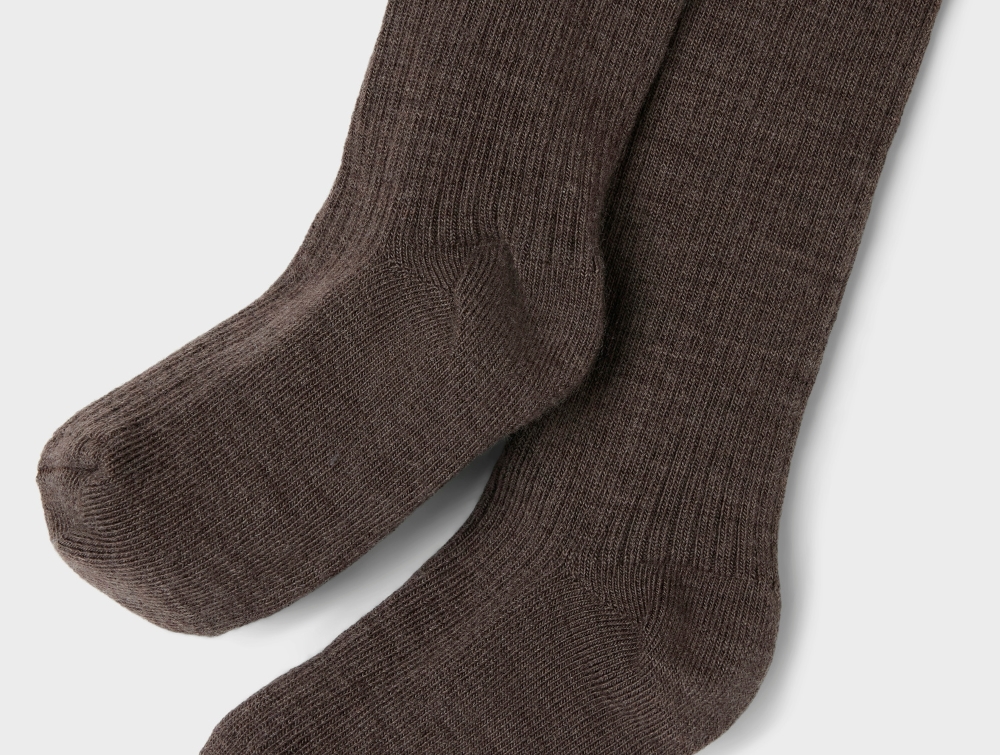 Uldstrømpebukser i ribstrik i farven shitake fra Lil' Atelier.