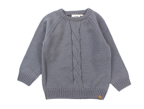 Sweater i det blødeste merinould med kabelstrik i farven monument melange fra Lil' Atelier.