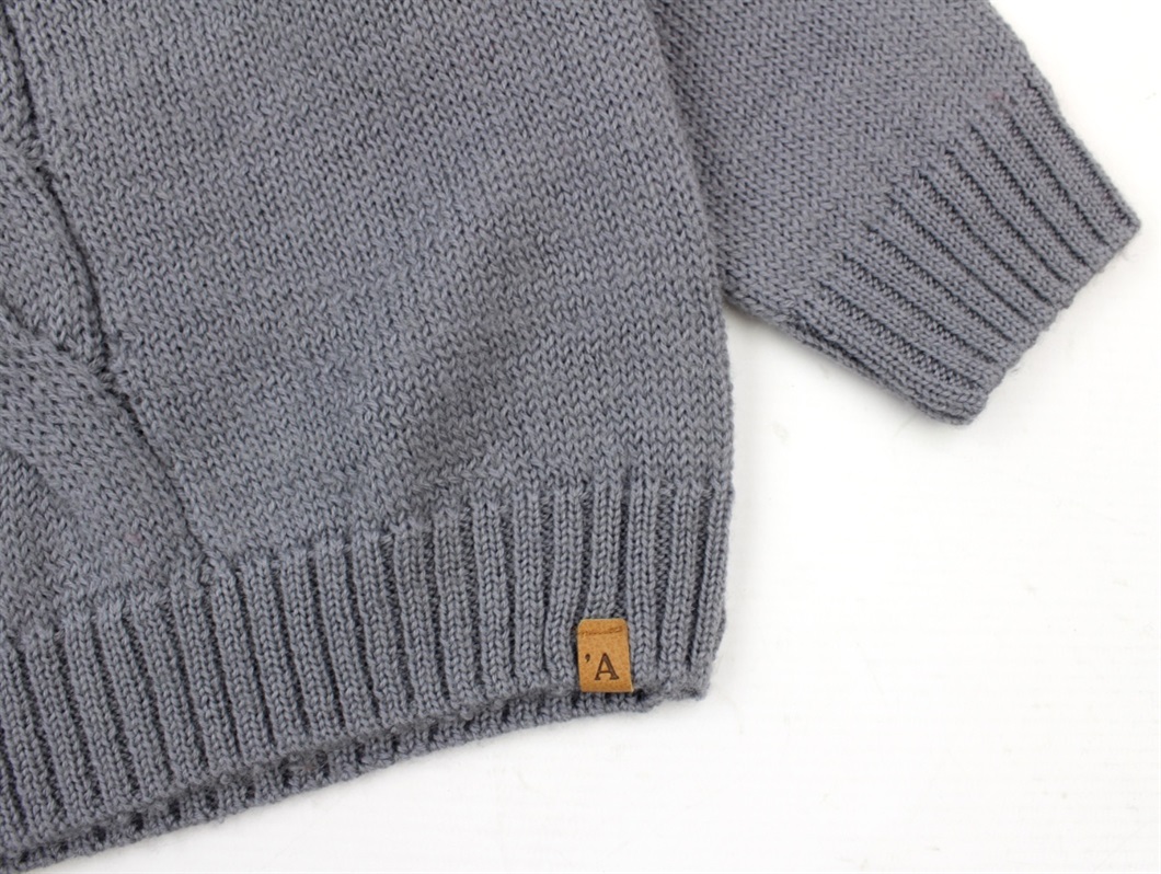 Sweater i det blødeste merinould med kabelstrik i farven monument melange fra Lil' Atelier.