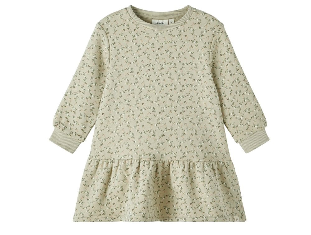 Lil Atelier moss gray sweatkjole blomsterLil Atelier moss gray sweatkjole blomster