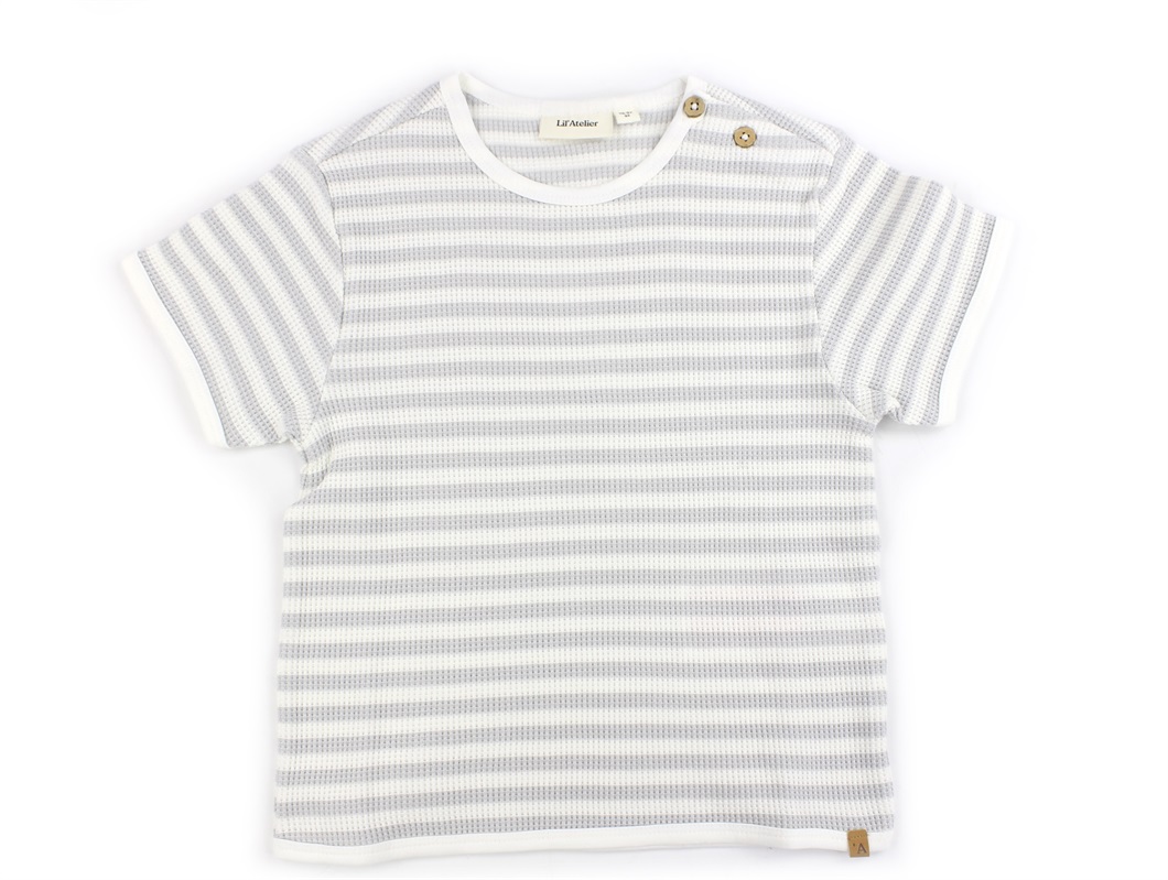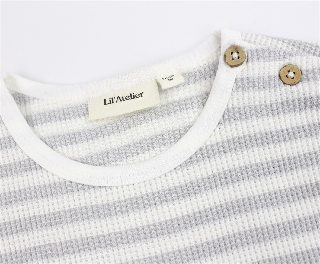 Stribet top i farverne oyster mushroom/coconut milk fra Lil' Atelier.