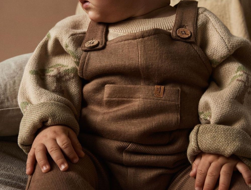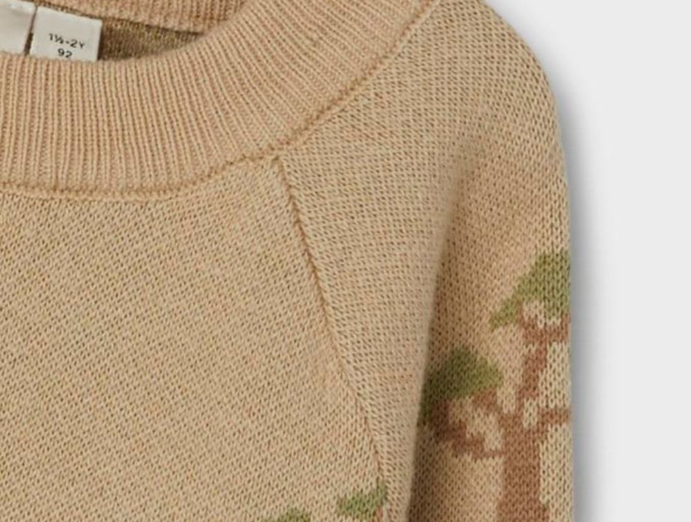 Strikbluse i farven pebble melange med træer fra Lil' Atelier.