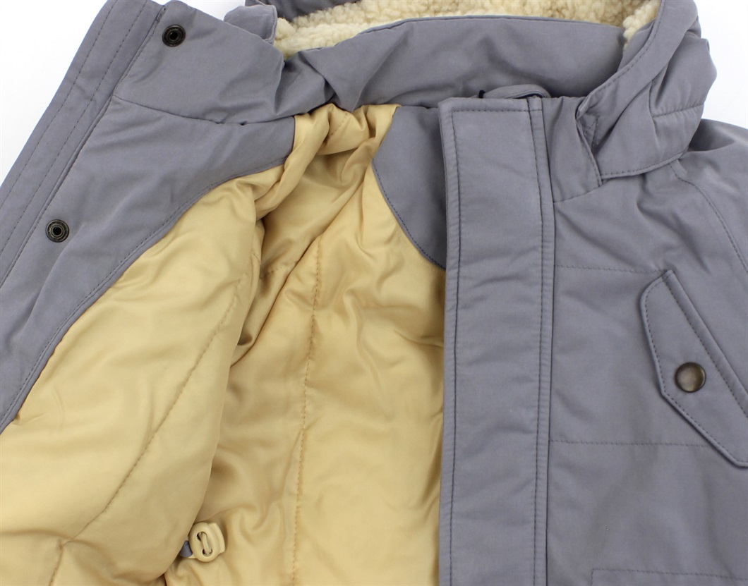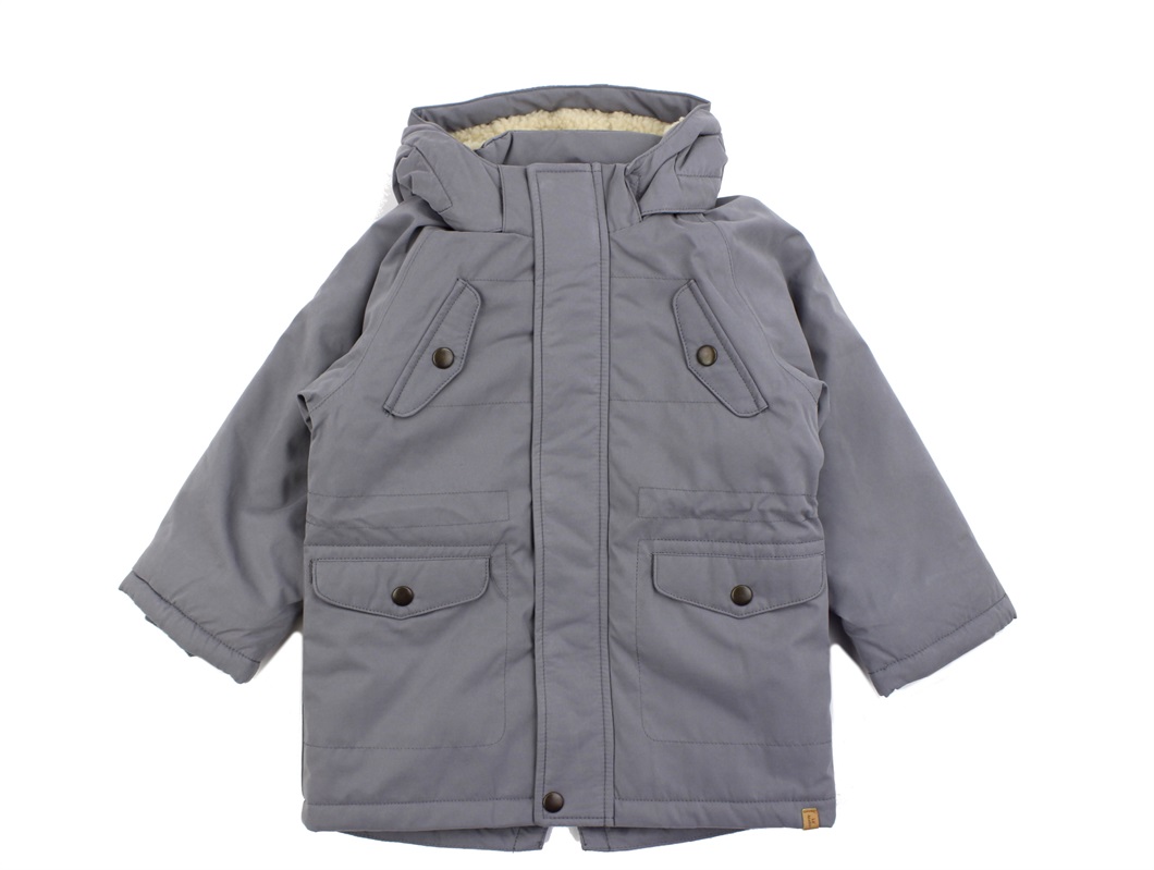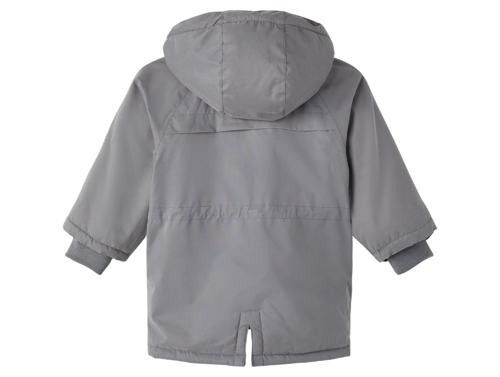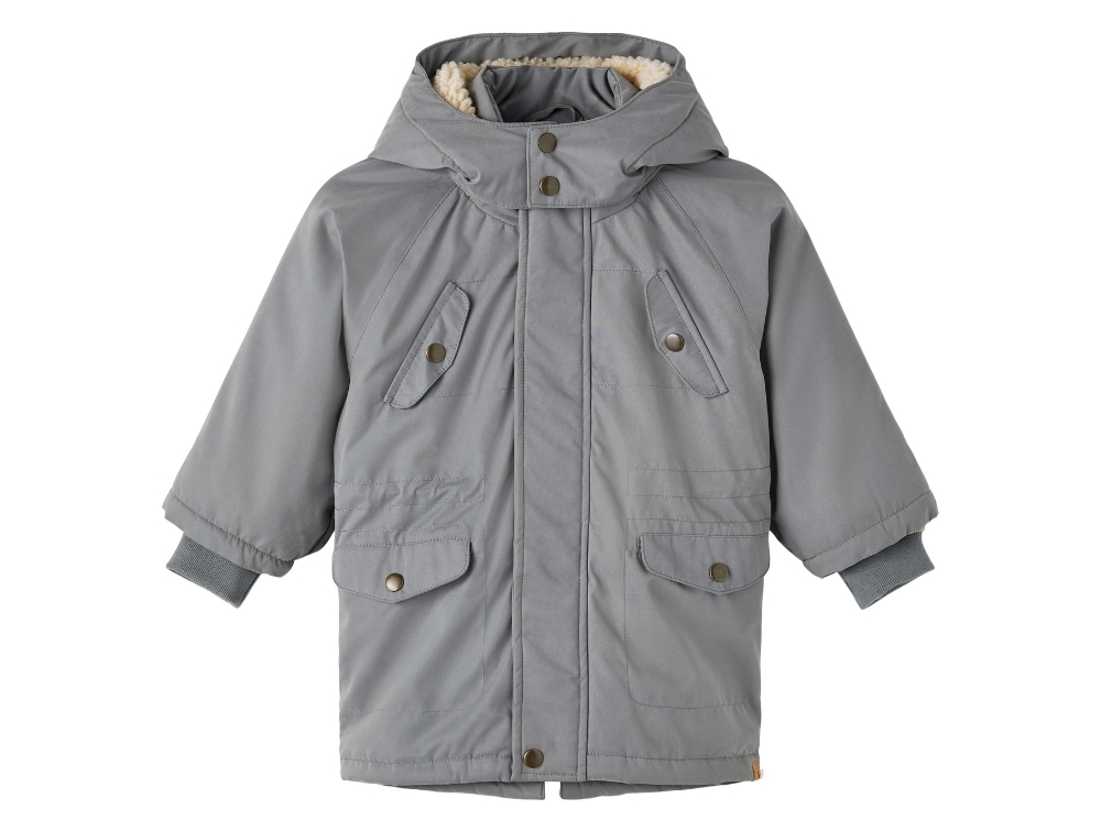 Vinterjakke i farven quiet shade fra Lil' Atelier. Jakken har en aftagelig hætte med trykknapper.