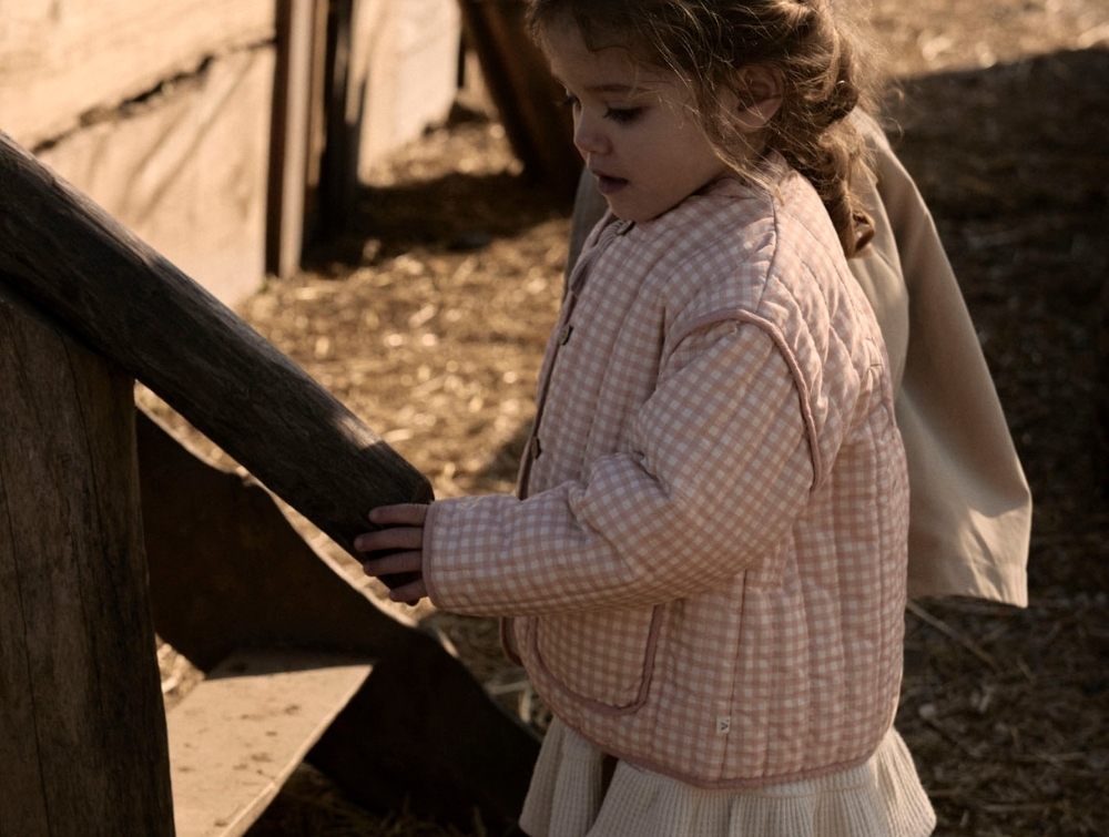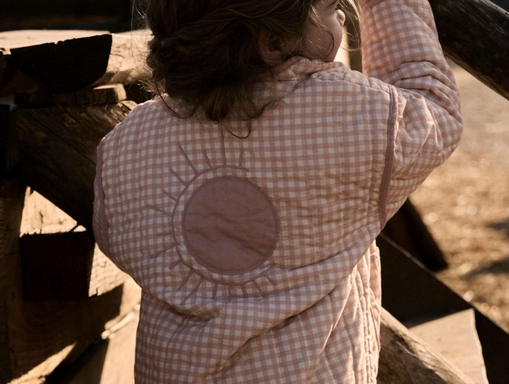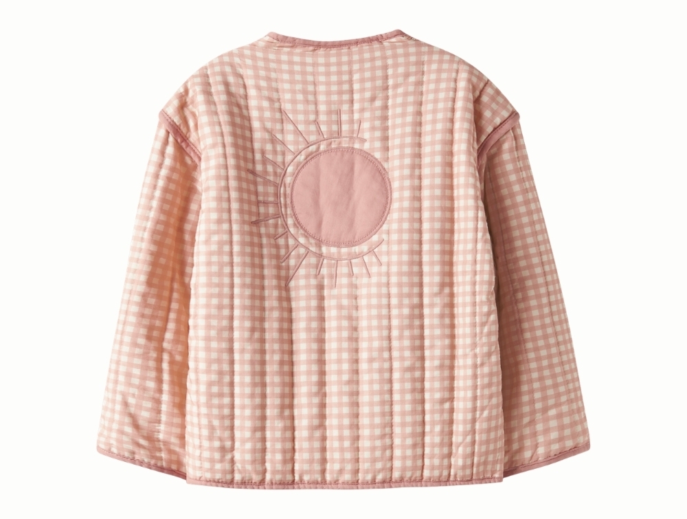 Lil' Atelier quiltet jakke i rosa med tern og solmotiv