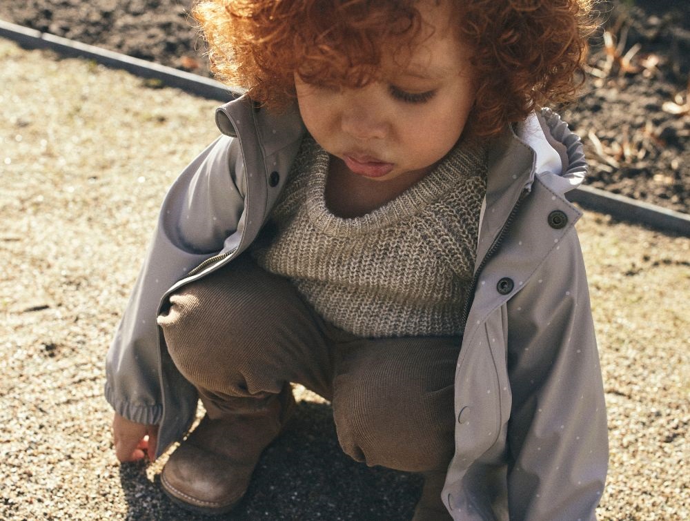 Prikket regnstøjssæt i mourning dove fra Lil' Atelier.