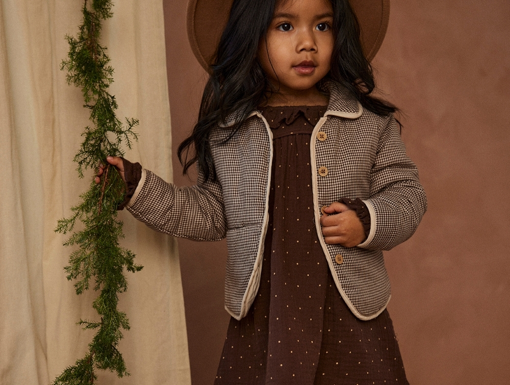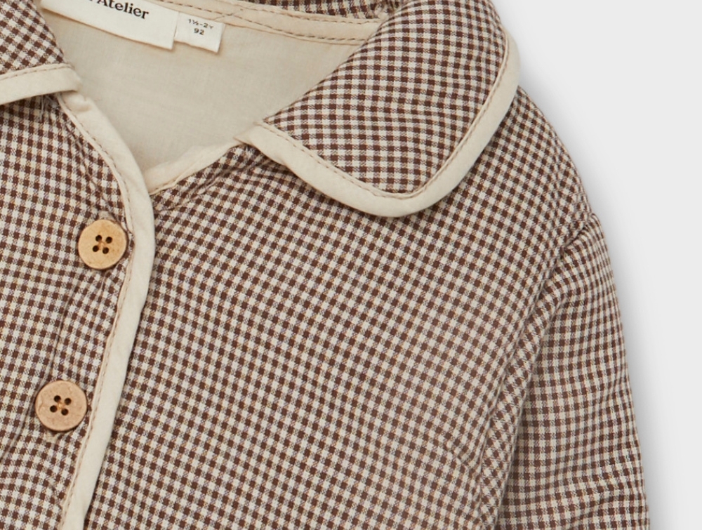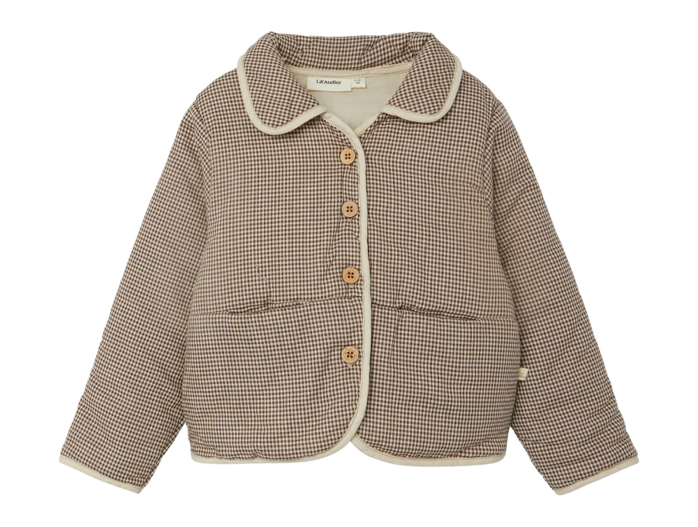 Lille blød jakke i farven rocky road med tern fra Lil' Atelier.