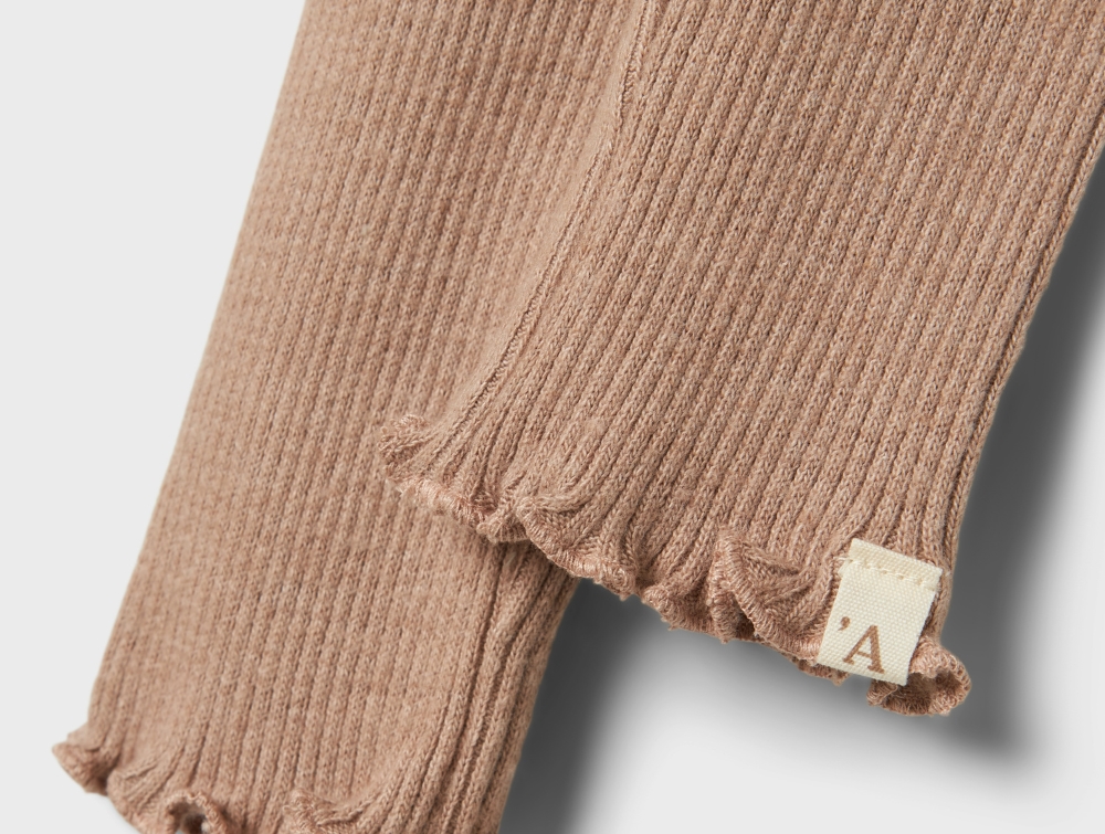 Leggings i farven rugby tan med flæser fra Lil' Atelier.