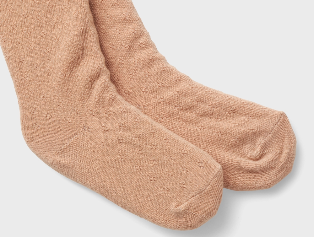 Strømpebukser i farven rugby tan med pointelle mønster fra Lil' Atelier.