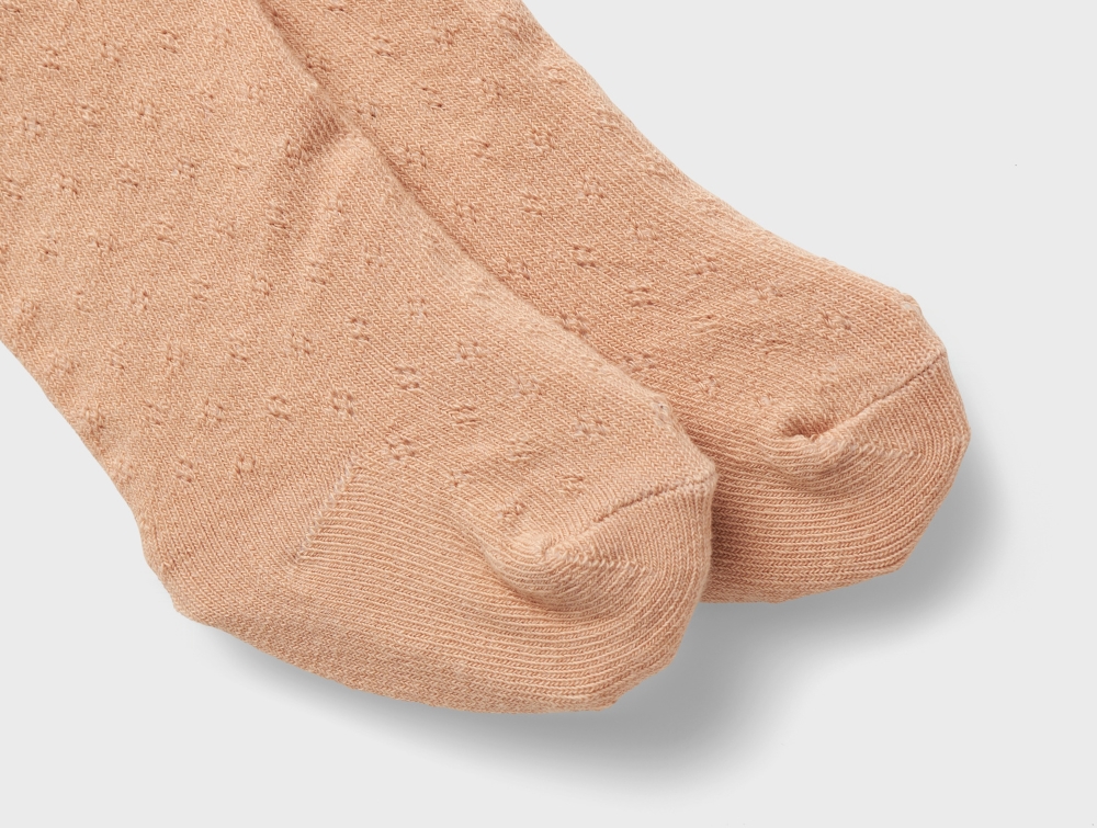 Strømpebukser i farven rugby tan med pointelle mønster fra Lil' Atelier.