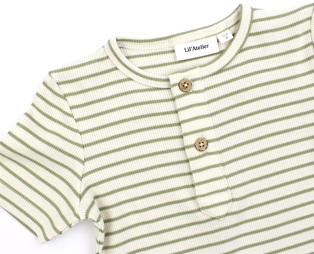 Stribet t-shirt med korte ærmer i farven sage fra Lil' Atelier.