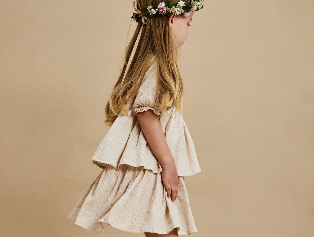 Fineste kjole i farven sandshell fra Lil' Atelier.