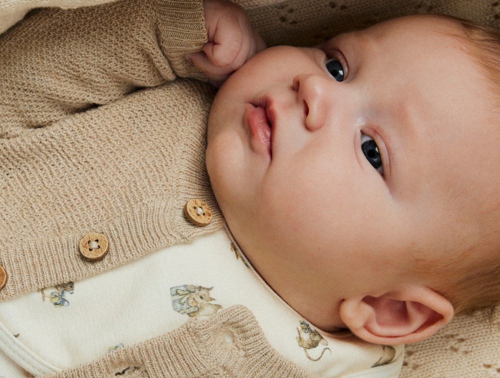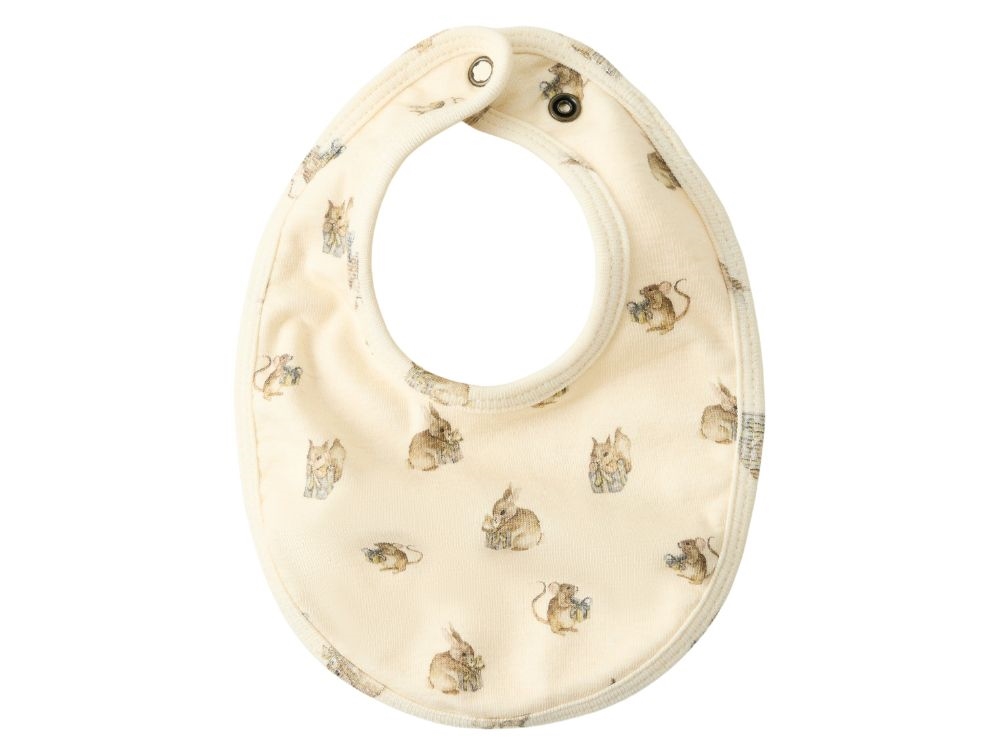 Smækken er lavet i blød, strækbar jerseykvalitet med trykknaplukning i nakken og afrundede kanter. Den kombinerer praktisk funktion med et nuttet design – perfekt til babyer, der savler eller spiser selv. Fremstillet i en blanding af økologisk bomuld og TENCEL™ lyocell.
