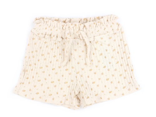 Shorts med flæsekant i farven shell med blomsterprint fra Lil' Atelier.
