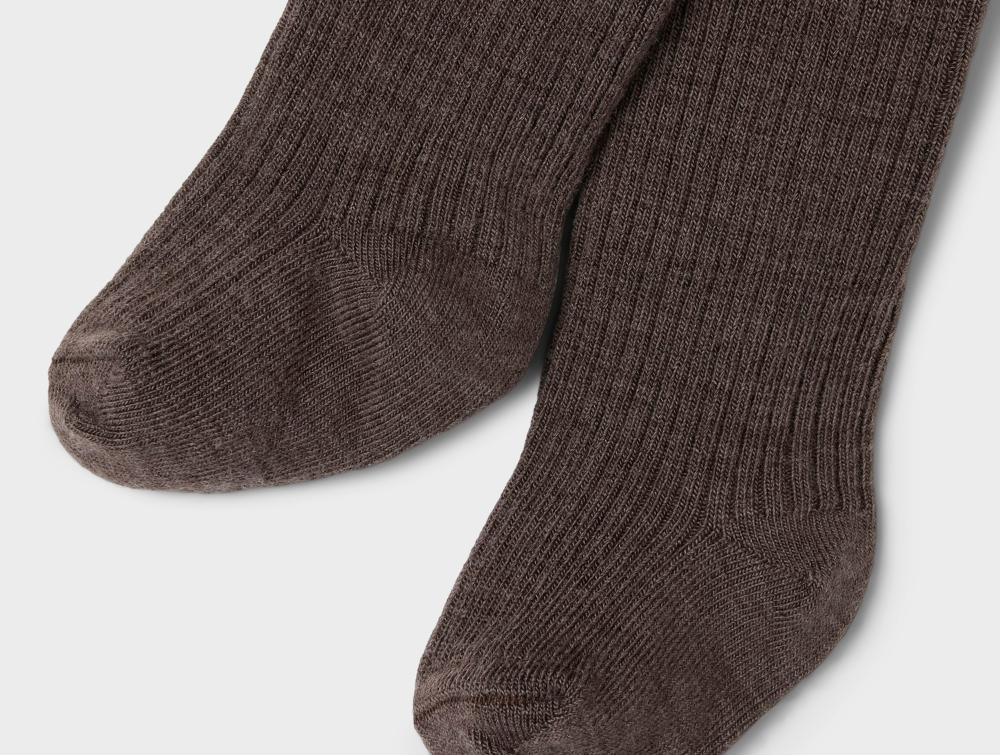Uldstrømpebukser i ribstrik i farven shitake fra Lil' Atelier.