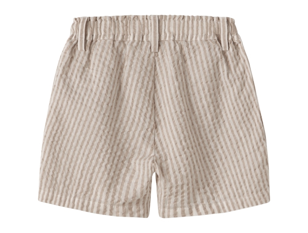 Shorts i råhvid nuance (coconut milk) fra Lil' Atelier med beige (feather gray) stribet struktur og elastik i taljen.