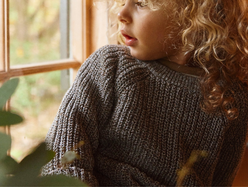 Striktrøje i farven sky gray fra Lil' Atelier.