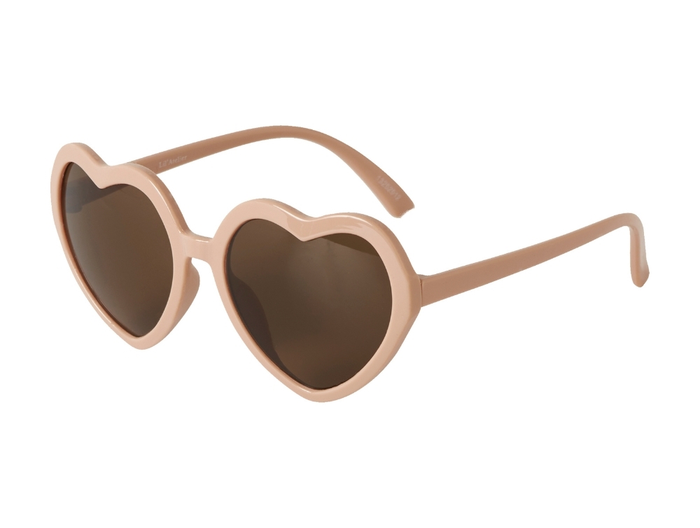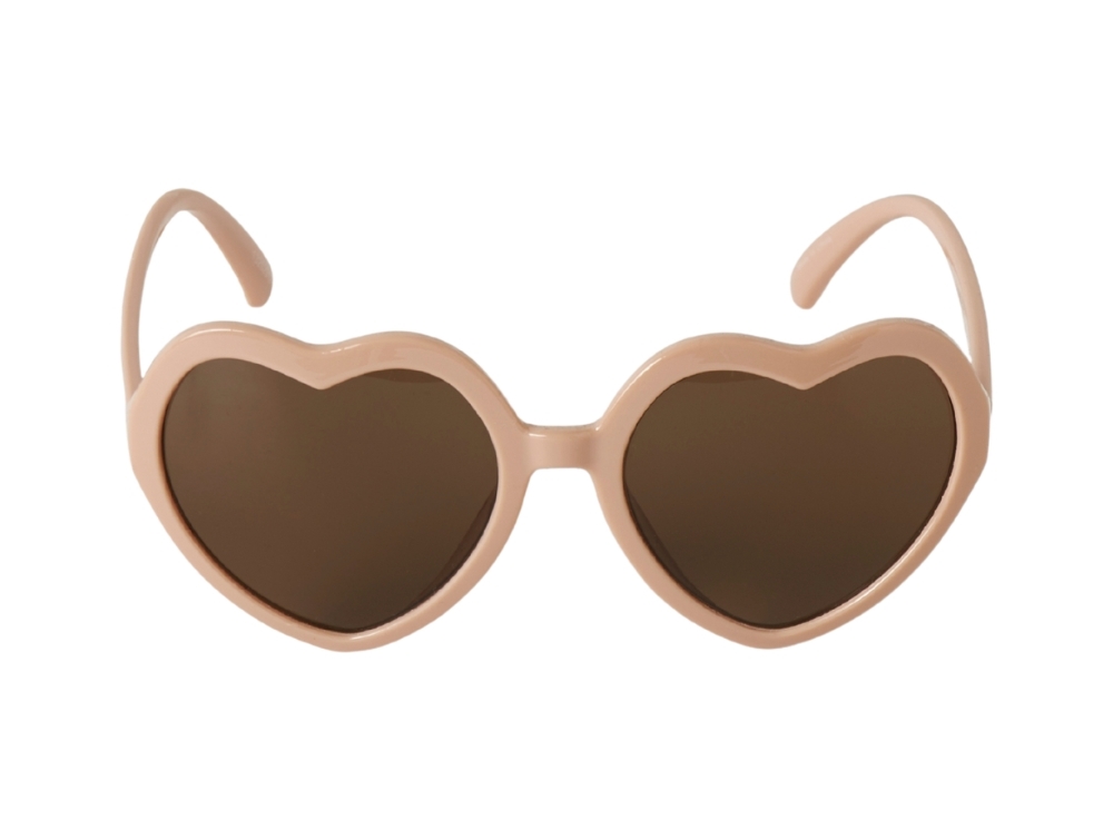 Solbriller i lyserød nuance (Peach Whip N080) fra Lil Atelier med hjerteformede glas.