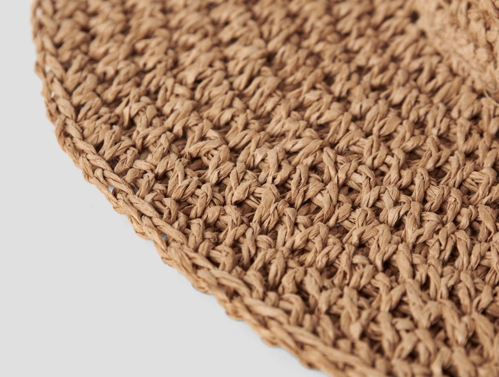 Hatten er flettet i 100% papirsugerør, som giver en let og luftig struktur. Den åbne fletning skaber ventilation, hvilket gør hatten behagelig at bruge i varmt vejr.